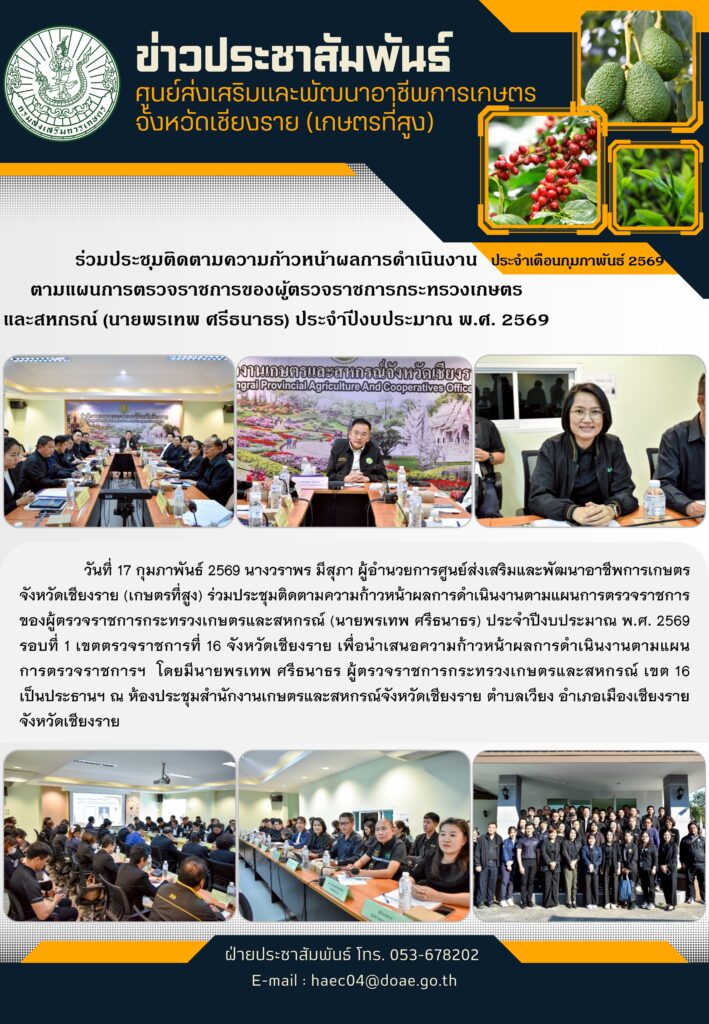 ร่วมประชุมติดตามความก้าวหน้าผลการดำเนินงานตามแผนการตรวจราชการของผู้ตรวจราชการกระทรวงเกษตรและสหกรณ์By haec04 / 26 กุมภาพันธ์ 2026