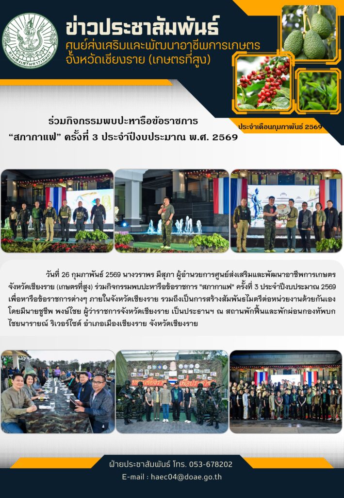 ร่วมกิจกรรมพบปะหารือข้อราชการ “สภากาแฟ” ครั้งที่ 3 ประจำปีงบประมาณ 2569By haec04 / 27 กุมภาพันธ์ 2026