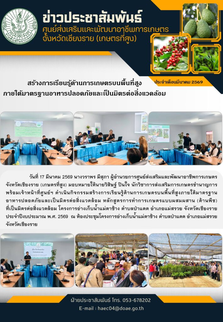 ดำเนินกิจกรรมสร้างการเรียนรู้ด้านการเกษตรบนพื้นที่สูงภายใต้มาตรฐานอาหารปลอดภัยและเป็นมิตรต่อสิ่งแวดล้อม
