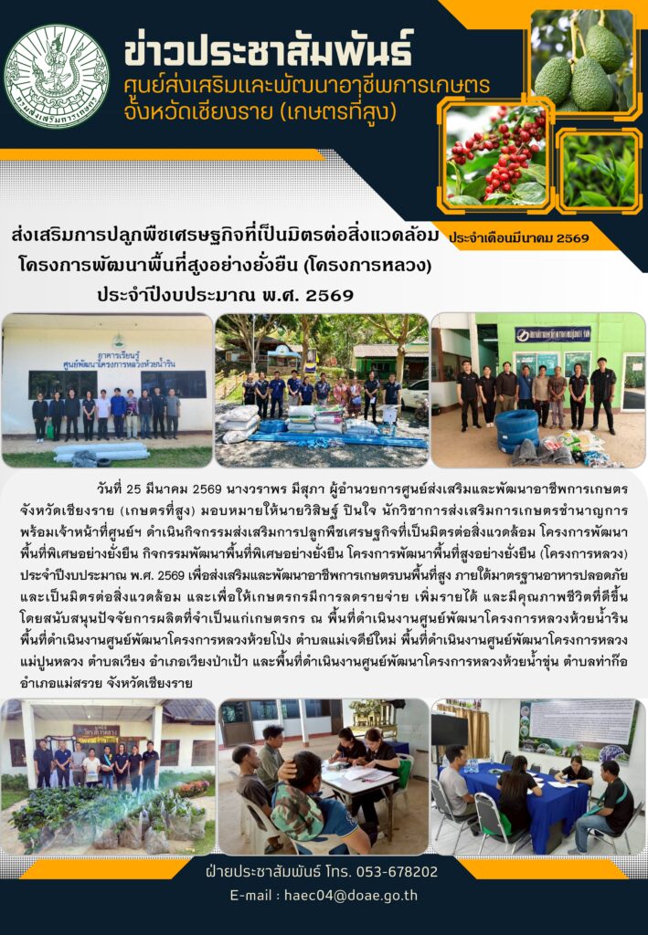 ส่งเสริมการปลูกพืชเศรษฐกิจที่เป็นมิตรต่อสิ่งแวดล้อม โครงการพัฒนาพื้นที่สูงอย่างยั่งยืน (โครงการหลวง)By haec04 / 27 มีนาคม 2026