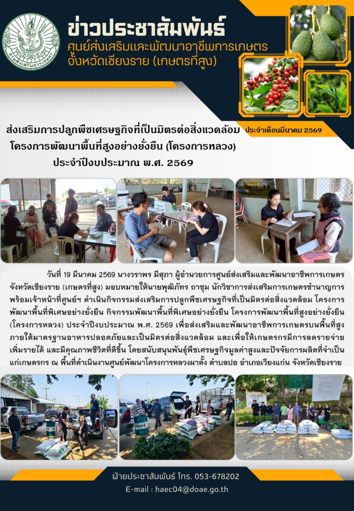 ส่งเสริมการปลูกพืชเศรษฐกิจที่เป็นมิตรต่อสิ่งแวดล้อม โครงการพัฒนาพื้นที่สูงอย่างยั่งยืน (โครงการหลวง)
