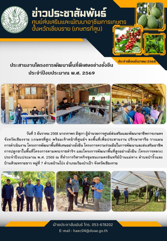 ข่าวประชาสัมพันธ์ประสานงาน โครงการความร่วมมือในการพัฒนาและส่งเสริมอาชีพการปลูกชาในพื้นที่โครงการตามพระราชดำริฯ และโครงการพัฒนาพื้นที่สูงอย่างยั่งยืน (โครงการหลวง) ประจำปีงบประมาณ พ.ศ. 2569 haec04 / 23 ธันวาคม 2025