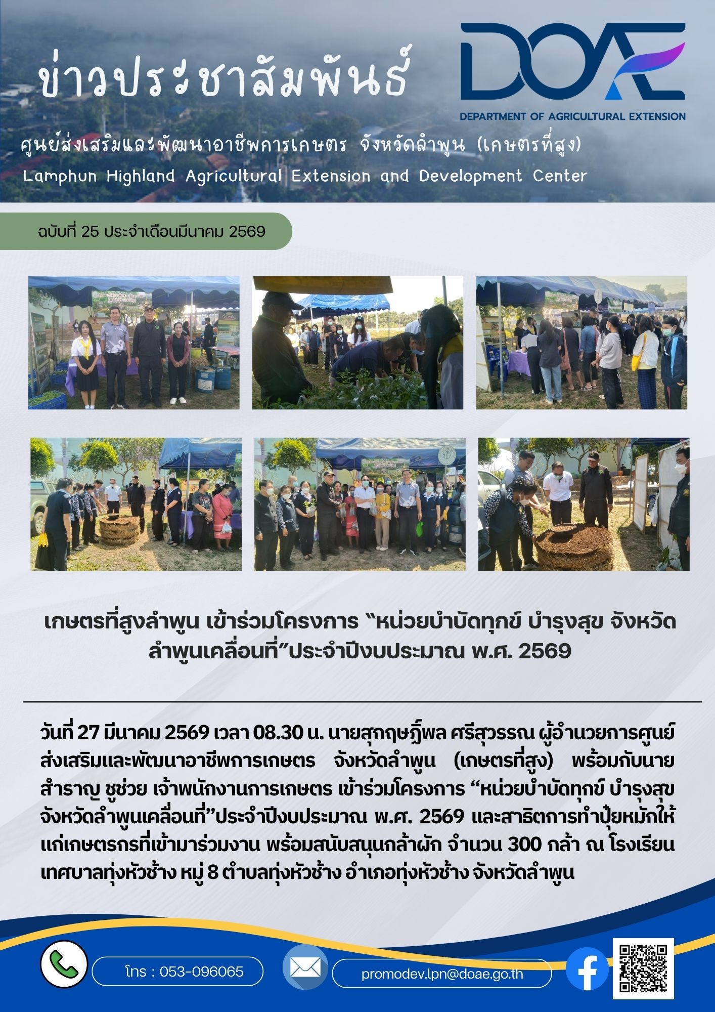 เกษตรที่สูงลำพูน เข้าร่วมโครงการ “หน่วยบำบัดทุกข์ บำรุงสุข จังหวัดลำพูนเคลื่อนที่”ประจำปีงบประมาณ พ.ศ. 2569