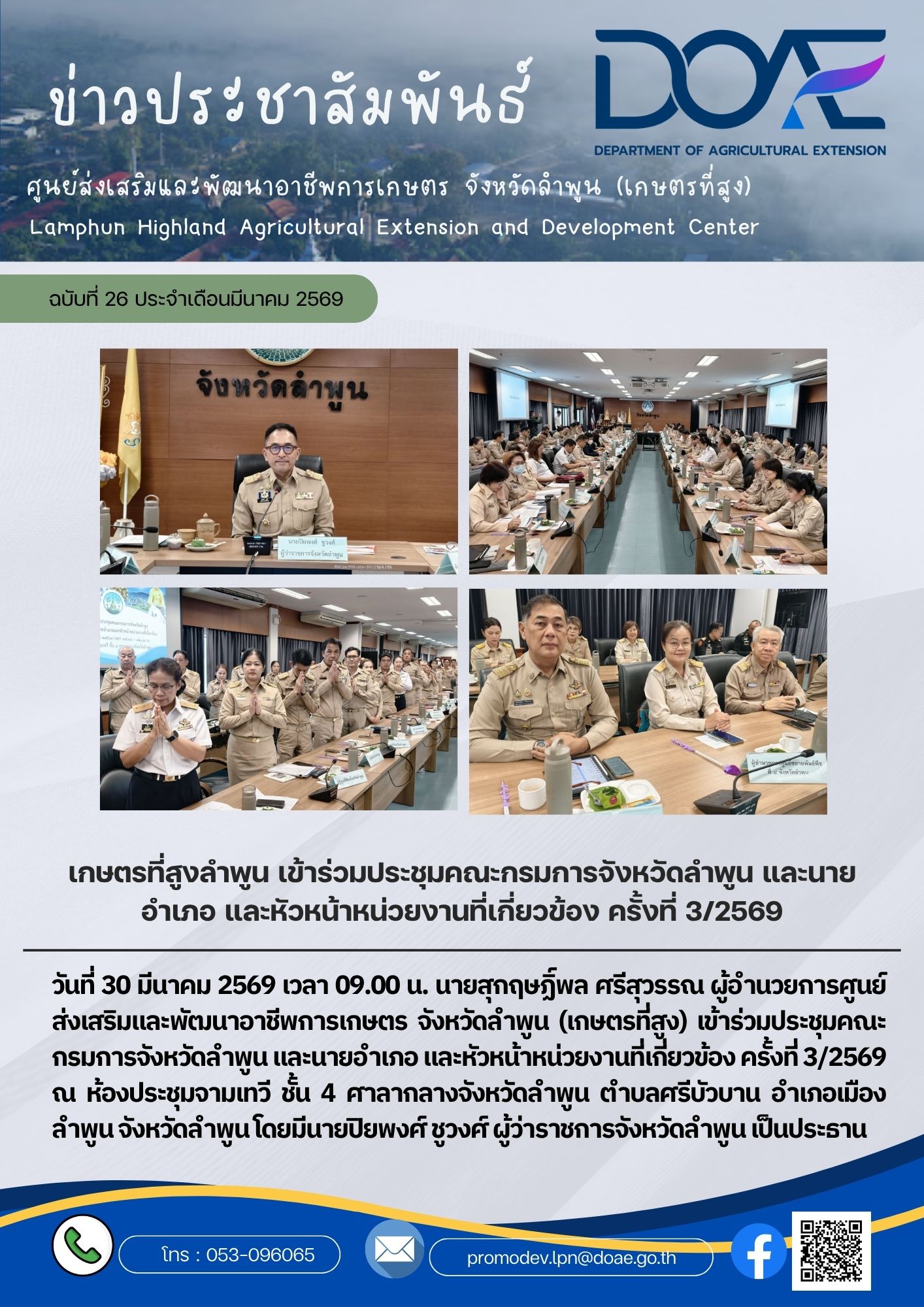 เกษตรที่สูงลำพูน เข้าร่วมประชุมคณะกรมการจังหวัดลำพูน และนายอำเภอ และหัวหน้าหน่วยงานที่เกี่ยวข้อง ครั้งที่ 3/2569