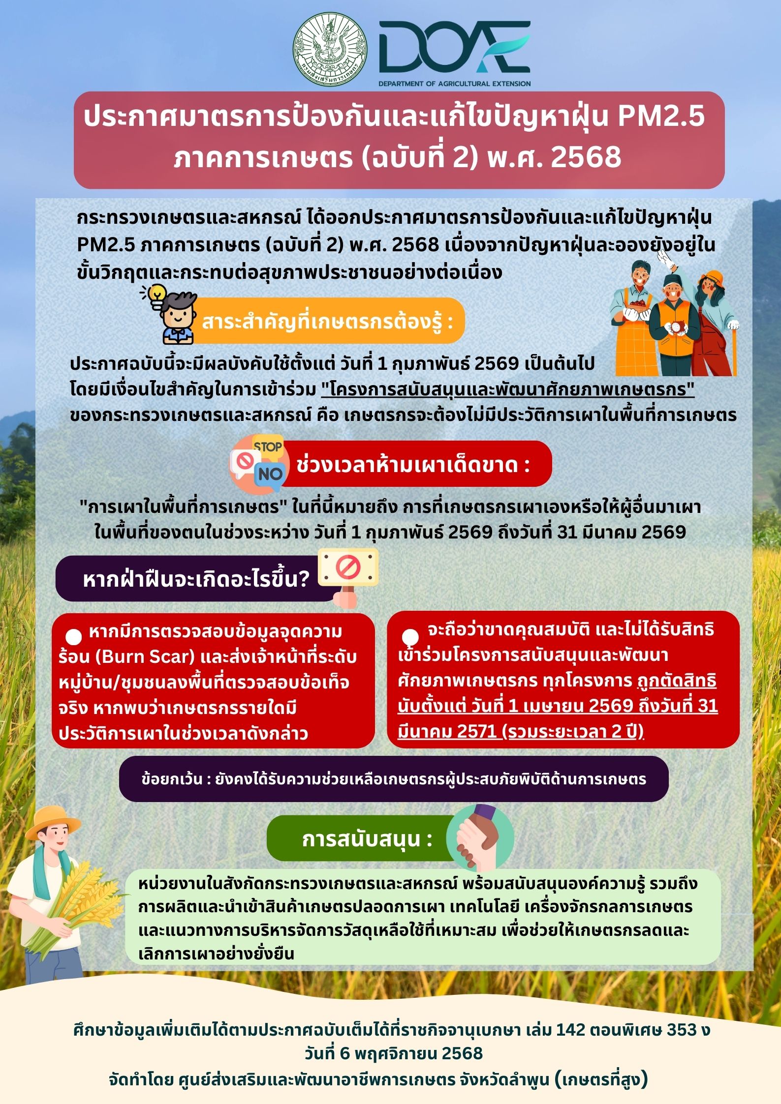 ประกาศมาตรการป้องกันและแก้ไขปัญหาฝุ่น PM2.5ข้อมูลเพิ่มเติม https://www.opsmoac.go.th/news-preview-… อ่านต่อ