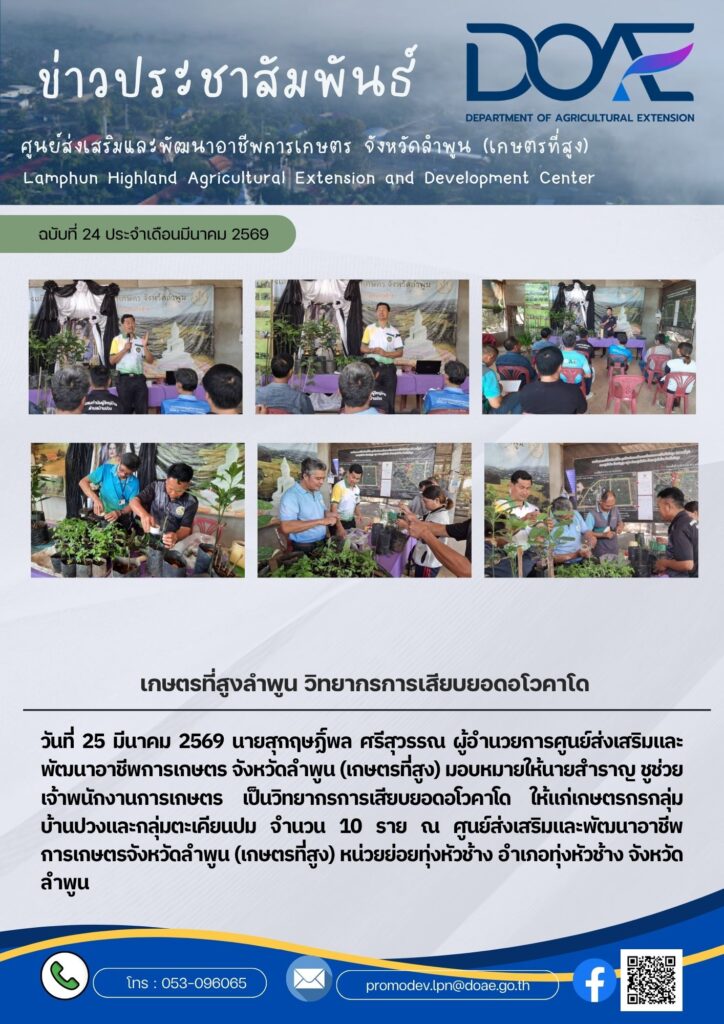 ข่าวประชาสัมพันธ์เกษตรที่สูงลำพูน วิทยากรการเสียบยอดอโวคาโด haec05 / 25 มีนาคม 2026 วันที่ 25 มีนาคม 256