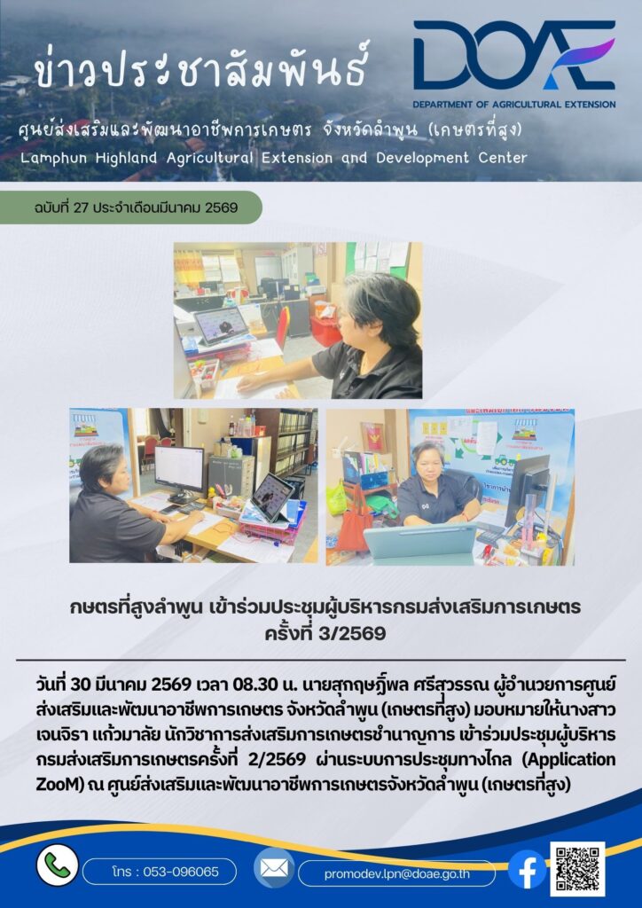 ข่าวประชาสัมพันธ์เกษตรที่สูงลำพูน เข้าร่วมประชุมผู้บริหารกรมส่งเสริมการเกษตรครั้งที่ 3/2569 haec05 / 30 มีนาคม 2026 วันที่ 30 มีนาคม 256 […]