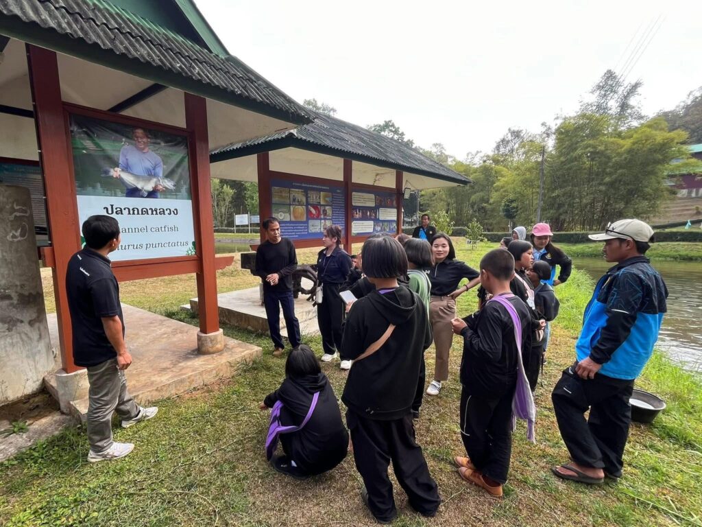 วันศุกร์ ที่ ๒๐ กุมภาพันธ์ ๒๕๖๙ นายเสกสรร บัลลังก์ ผู้อำนวยการศูนย์ส่งเสริมและพัฒนาอาชีพการเกษตรจังหวัดแม่ฮ่องสอน (เกษตรที่สูง) ทำหน้าที่ผู้จัดการศูนย์บริการและพัฒนาที่สูงปางตอง ตามพระราชดำริ มอบหมายให้นางสาวพนิดา สาลีอาจ และนางสาวอรุโณทัย สิงห์ทอน นักวิชาการส่งเสริมการเกษตร ต้อนรับคณะศึกษาดูงานจากโรงเรียนบ้านแม่หาด อำเภอสบเมย จังหวัดแม่ฮ่องสอน รวมจำนวนครูและนักเรียน ทั้งหมด ๓๐ ราย ในพื้นที่ศูนย์บริการและพัฒนาที่สูงปางตองตามพระราชดำริ จังหวัดแม่ฮ่องสอน ตามฐานเรียนรู้ต่างๆ ได้แก่ ฐานเรียนรู้ด้านการประมงบนพื้นที่สูง (การเพาะขยายพันธ์ุเขียงแลวในธรรมชาติ) ฐานเรียนรู้ด้านประมงบนพื้นที่สูง (การเลี้ยงปลาสเตอร์เจียน) ฐานเรียนรู้ด้านการเพาะเลี้ยงกล้วยไม้ท้องถิ่นและเฟิร์น (เอื้องแซะ) และฐานเรียนรู้ด้านการเพาะเลี้ยงและขยายพันธุ์สัตว์ป่า (สวนสัตว์เปิดปางตอง) และฐานเรียนรู้การเลี้ยงสัตว์บนพื้นที่สูง (ฟาร์มแกะ)