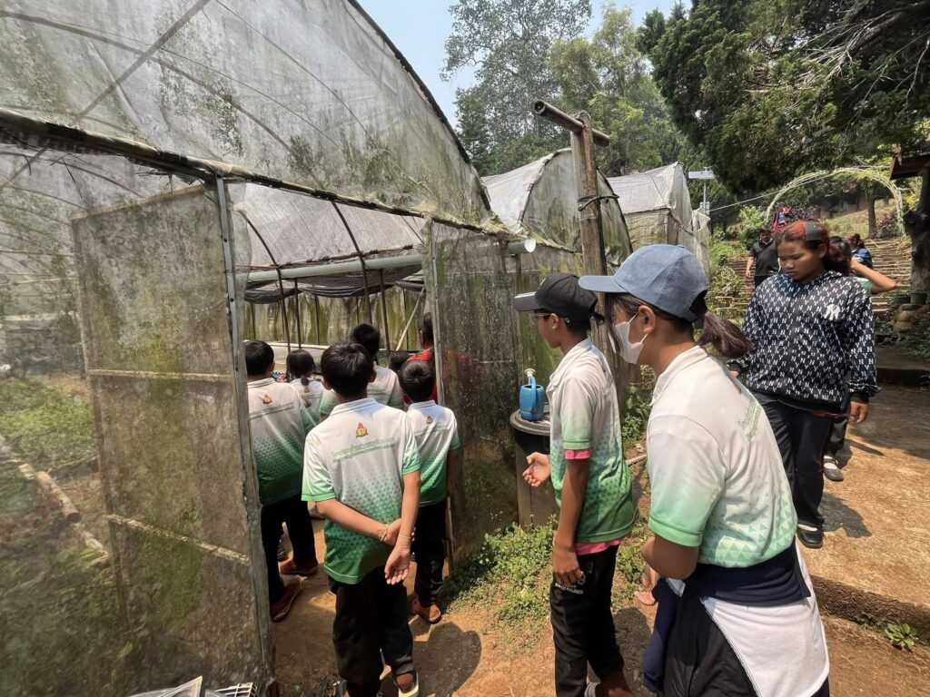 วันพฤหัสบดีที่ ๒๖ มีนาคม ๒๕๖๙ นายเสกสรร บัลลังก์ ผู้อำนวยการศูนย์ส่งเสริมและพัฒนาอาชีพการเกษตรจังหวัดแม่ฮ่องสอน (เกษตรที่สูง) มอบหมายให้นางสาวบุษยพรรณ แก้วมูล นักวิชาการส่งเสริมการเกษตรปฏิบัติการ และนางสาวพนิดา สาลีอาจ นักวิชาการส่งเสริมการเกษตร ต้อนรับคณะศึกษาดูงานจากโรงเรียนบ้านปางบอนวัฒนาคาร อำเภอปางมะผ้า จังหวัดแม่ฮ่องสอน รวมจำนวนครูและนักเรียน ทั้งหมด ๓๕ ราย เดินชมฐานแปลงเรียนรู้ แปลงผัก ลูกชิด (ต๋าว) กาแฟ และแปลงดอก ณ ศูนย์ส่งเสริมและพัฒนาอาชีพการเกษตรจังหวัดแม่ฮ่องสอน (เกษตรที่สูง) เพื่อให้นักเรียนได้เรียนจากประสบการณ์จริง มีทัศนคติที่ตีต่อการเรียนรู้จากสื่อ แหล่งเรียนรู้ที่หลากหลายและสามารถแก้ไขปัญหาเฉพาะหน้าได้