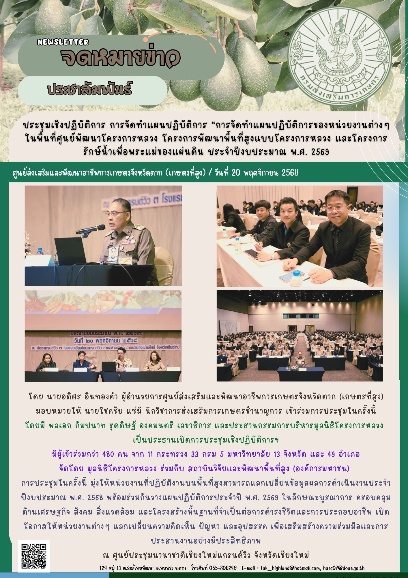 เกษตรที่สูงตาก เข้าร่วม ประชุมเชิงปฏิบัติการ การจัดทำแผนปฏิบัติการ “การจัดทำแผนปฏิบัติการของหน่วยงานต่างๆ ในพื้นที่ศูนย์พัฒนาโครงการหลวง โครงการพัฒนาพื้นที่สูงแบบโครงการหลวง และโครงการรักษ์น้ำเพื่อพระแม่ของแผ่นดิน ประจำปีงบประมาณ พ.ศ. 2569”