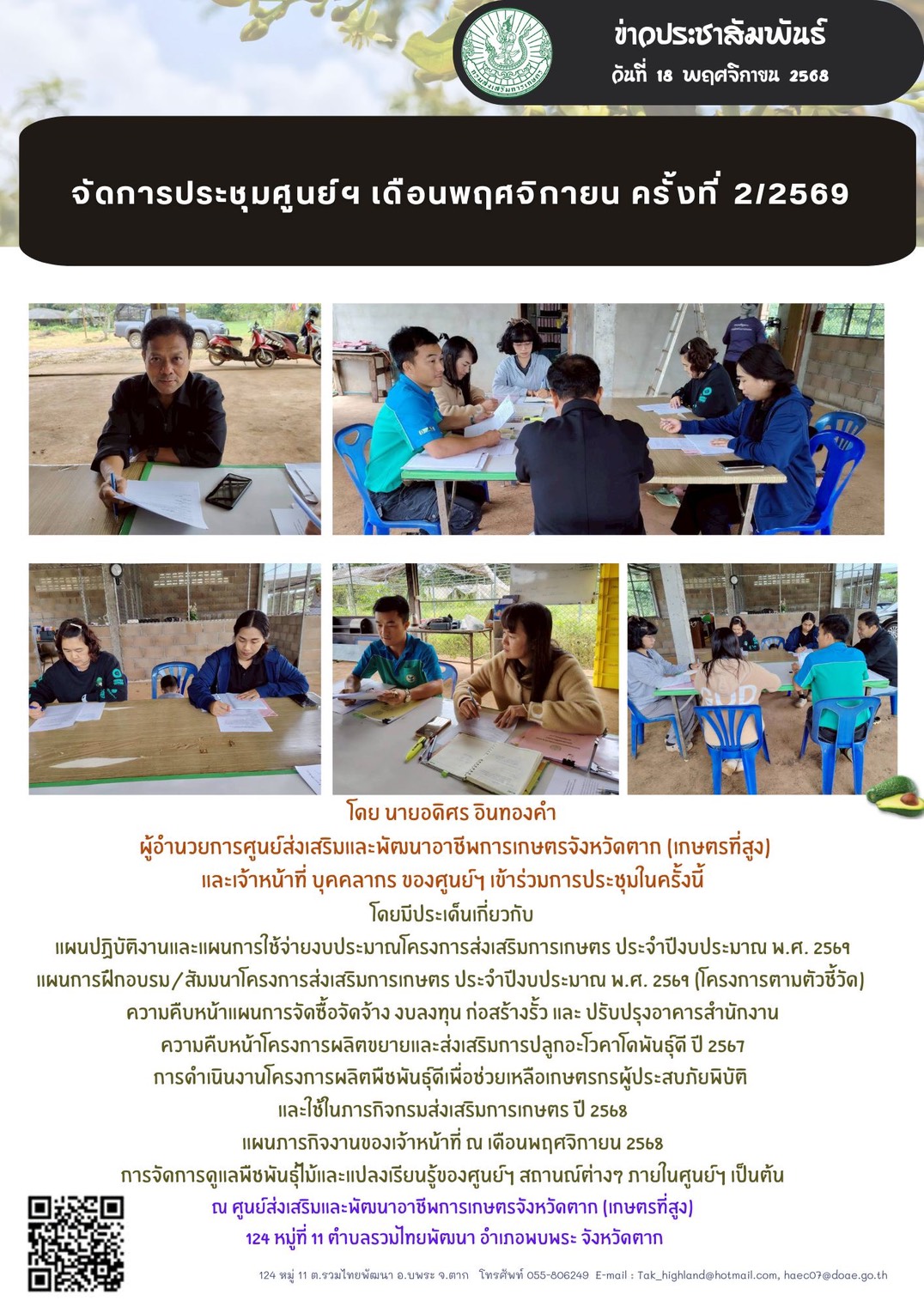 เกษตรกรที่สูงตาก จัดการประชุมศูนย์ฯ เดือนพฤศจิกายน ครั้…