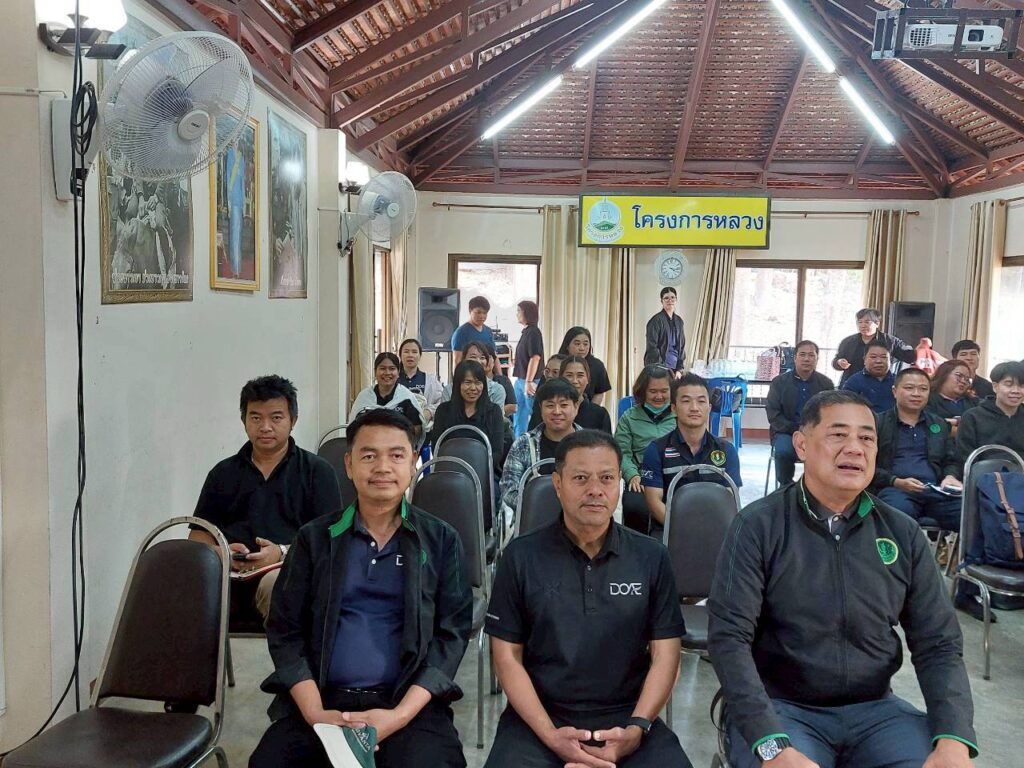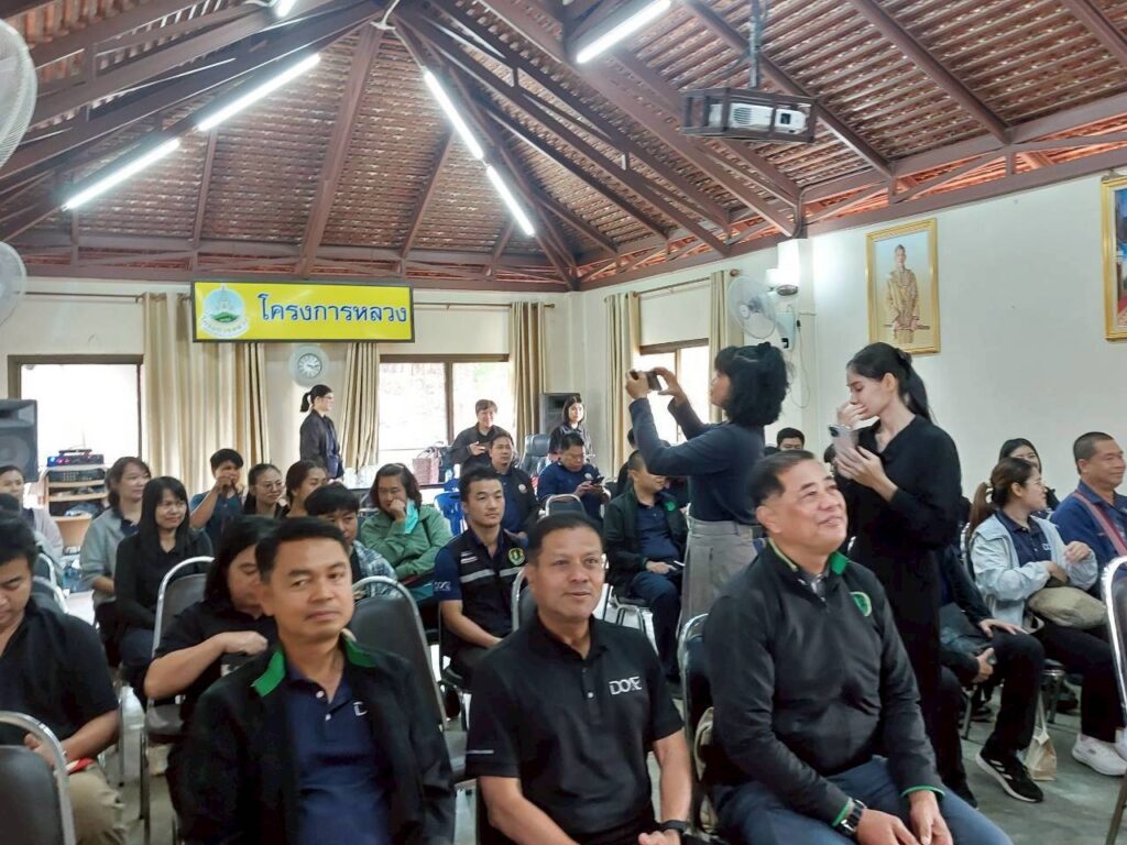 โดยช่วงเช้า การบรรยายการดำเนินงานของโครงการหลวง ณ ห้องประชุมโครงการหลวงพระบาทห้วยต้ม และได้พาคณะเยี่ยมชมแปลงพืชพรรณต่างๆภายในโครงการหลวง