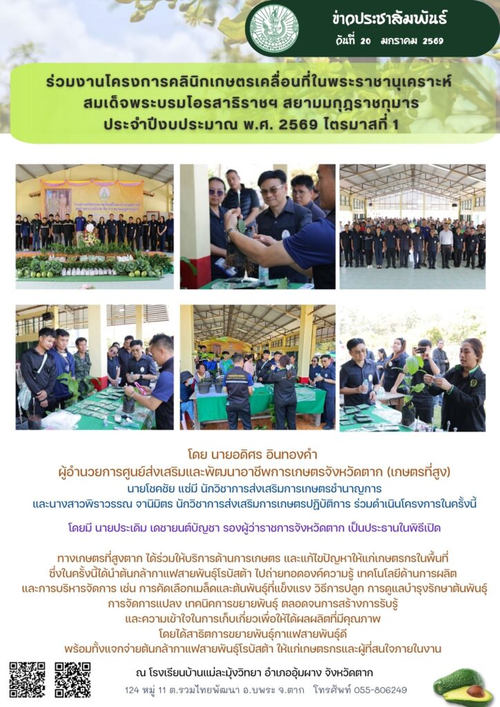 ข่าวประชาสัมพันธ์วันที่ 12 มกราคม 2569 เกษตรที่สูงตาก จัดการประชุมศูนย์ฯ เดือนมกราคม ครั้งที่ 4/2569 haec07 / 12 มกราคม 2026 โดย นายอดิศร อินทองค