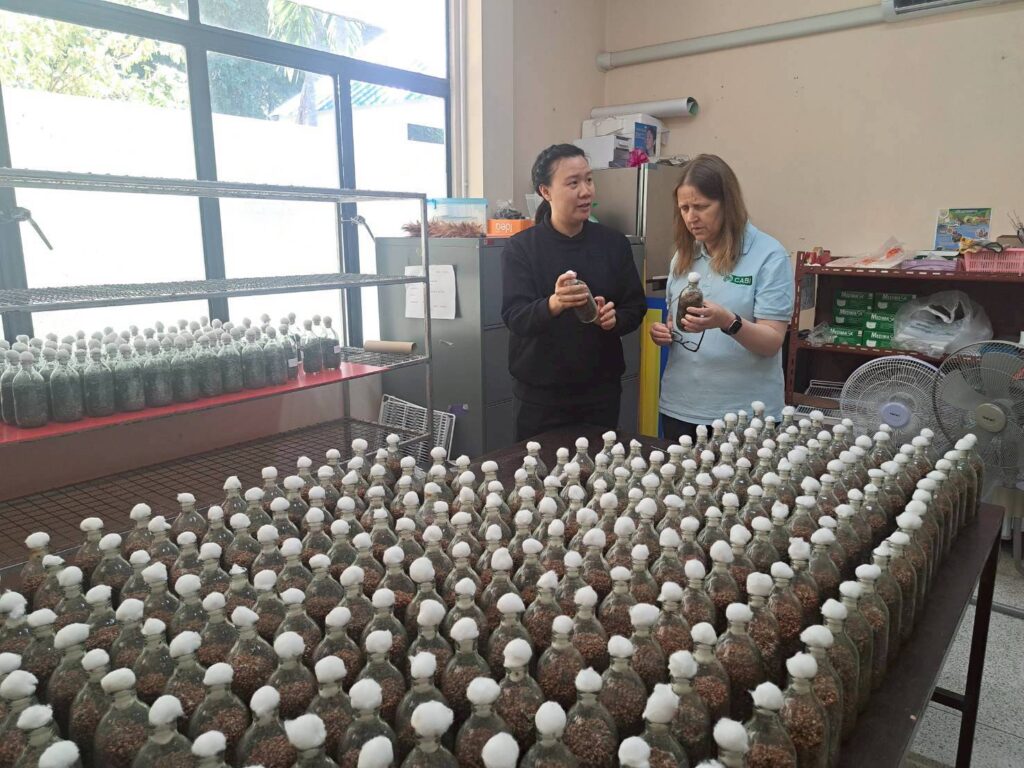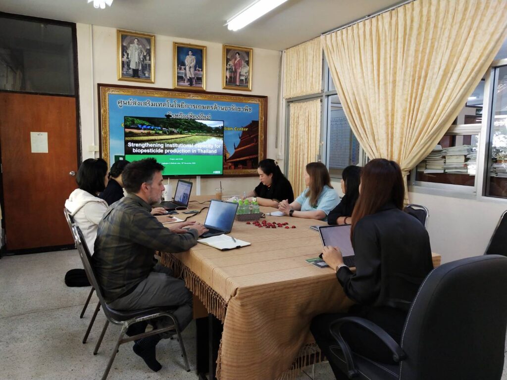 นางสาวนุชจารี วนาศิริ นักวิชาการส่งเสริมการเกษตรชำนาญการพิเศษ ปฏิบัติหน้าที่ผู้อำนวยการ ศทอ. เชียงใหม่ พร้อมด้วยนางสาวเอมลิน พิพัฒนภักดี นักวิชาการส่งเสริมการเกษตรชำนาญการ และเจ้าหน้าที่ของศูนย์ส่งเสริมเทคโนโลยีการเกษตรด้านอารักขาพืชจังหวัดเชียงใหม่ ให้การต้อนรับเจ้าหน้าที่จาก CABI International ในประเด็นการวิจัยและพัฒนาชีวภัณฑ์ควบคุมศัตรูพืช (Biopesticide) ในประเทศไทย โครงการ Strengthening institutional capacity for biopesticide production in Thailand ร่วมกับ Dr.Steve Edgington และ Dr.Belinda Luke จาก CABI Europe-UK ผู้เชี่ยวชาญจาก CABI International โดยกรมส่งเสริมการเกษตร และ CABI ได้ร่วมกันพัฒนา