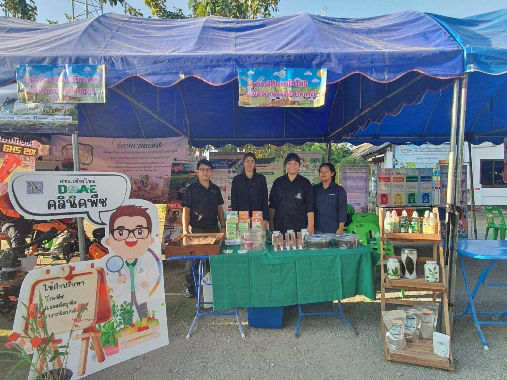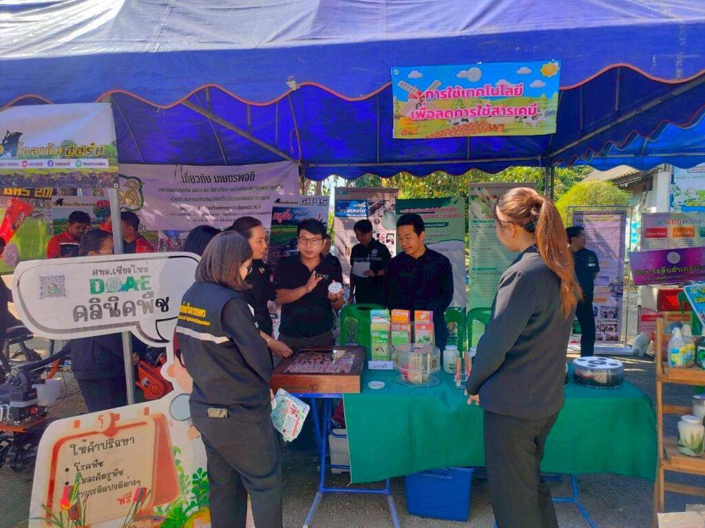 นางสาวนุชจารี วนาศิริ นักวิชาการส่งเสริมการเกษตรชำนาญการพิเศษ ปฏิบัติหน้าที่ผู้อำนวยการ ศทอ. เชียงใหม่ พร้อมด้วยนายอภิเชษฐ์ กันทวงษ์ นักวิชาการส่งเสริมการเกษตรชำนาญการ ร่วมจัดนิทรรศการงาน Green Gain Day สร้างการเรียนรู้และสร้างแรงจูงใจ “ไม่เผาแต่ได้รายได้” ณ องค์การบริหารส่วนตำบลน้ำดิบ อำเภอป่าซาง จังหวัดลำพูน โดยมีวัตถุประสงค์เพื่อลดการเผาเศษวัสดุเหลือใช้ทางการเกษตร ป้องกันการเกิดฝุ่นควัน PM 2.5 ซึ่งได้รับเกียรติจากรองผู้ว่าราชการจังหสัดลำพูนเป็นประธานในพิธี ทั้งนี้ ศทอ.เชียงใหม่ ได้นำสารชีวภัณฑ์ แมลงศัตรูธรรมชาติ และตัวอย่างแมลงศัตรูพืช นำไปจัดแสดงให้แก่ผู้มาร่วมงานได้รับชม ทั้งนี้ ยังมีการนำองค์ความรู้ด้านการนำเชื้อราไตรโคเดอร์มาไปใช้ร่วมกับการทำปุ๋ยหมักอีกด้วย (เมื่อวันที่ 12 กุมภาพันธ์ 2569