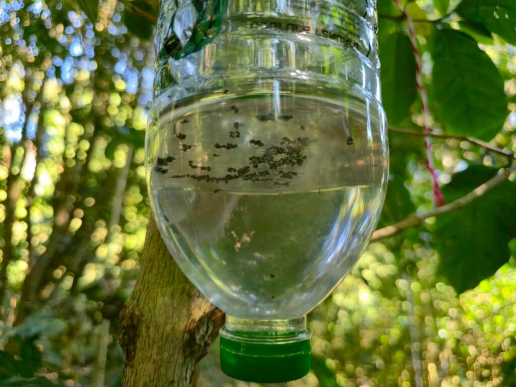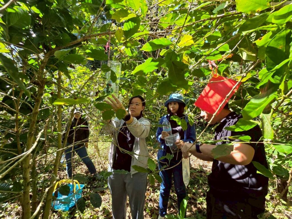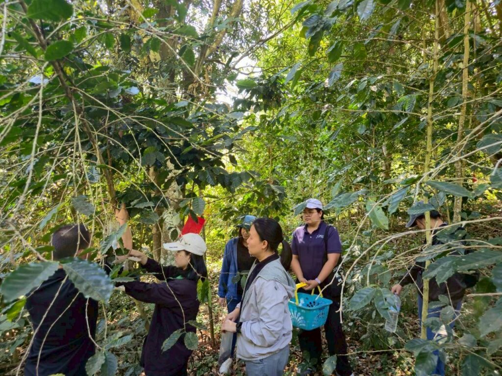 นางสาวนุชจารี วนาศิริ นักวิชาการส่งเสริมการเกษตรชำนาญการพิเศษ ปฏิบัติหน้าที่ผู้อำนวยการ ศทอ. เชียงใหม่ มอบหมายให้นางสาวเอมลิน พิพัฒนภักดี นวส.ชำนาญการ นางพรพรรณ จันทะวงษ์ นวส.ชำนาญการ และนางสาววิยะดา แก้วเคียงคำ นวส.ชำนาญการ ลงพื้นที่สำรวจและเก็บผลการทดลองกับดักมอดเจาะผลกาแฟ ภายใต้โครงการสำรวจและประเมินสถานการณ์มอดเจาะผลกาแฟ (Coffee Berry Borer) ในพื้นที่ปลูกกาแฟภาคเหนือตอนบน ครั้งที่ 1 ร่วมกับสำนักงานเกษตรจังหวัดแม่ฮ่องสอน และสำนักงานเกษตรอำเภอแม่สะเรียง จากการลงพื้นที่สำรวจ พบว่ากาแฟอยู่ในระยะหลังการเก็บเกี่ยว มีผลตกค้างที่ยังไม่ได้เก็บเกี่ยวอยู่บ้าง สภาพแปลงปลูกกาแฟใต้ต้นแมคคาเดเมีย หลังจากวางกับดักทั้ง 7 อัน ไปแล้ว 14 วัน พบมอดเจาะผลกาแฟปริมานค่อนข้างมาก (เมื่อวันที่ 16 กุมภาพันธ์ 2569)