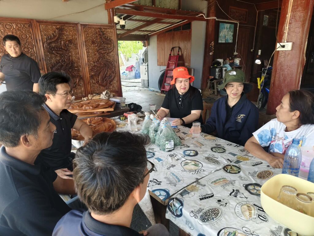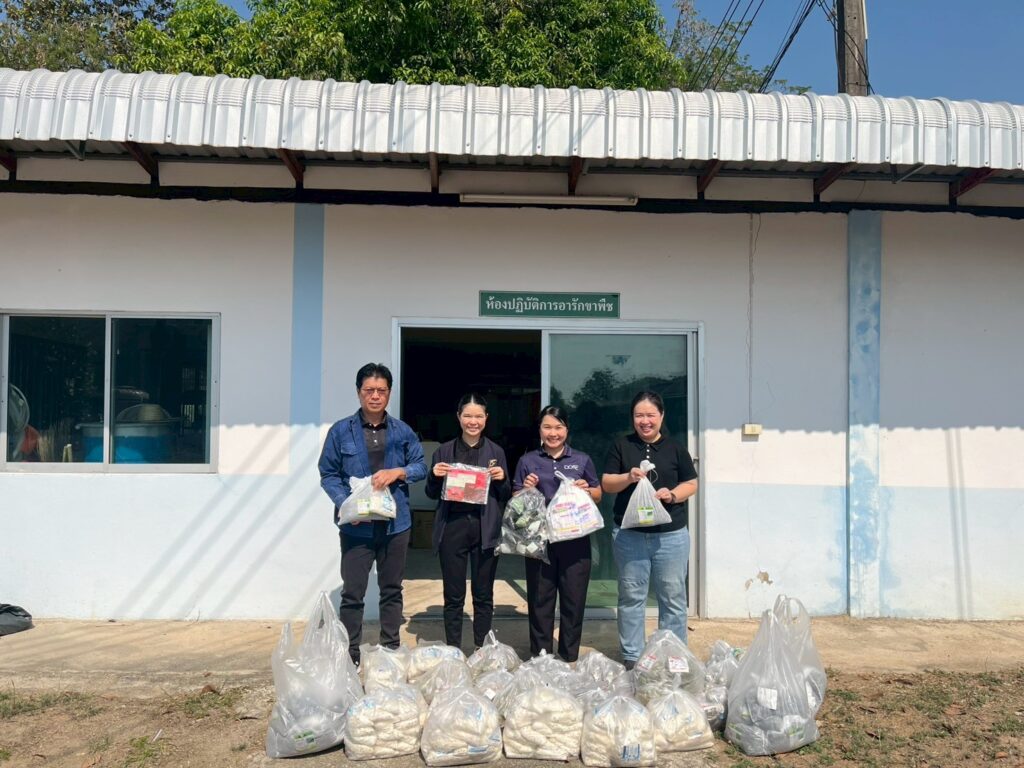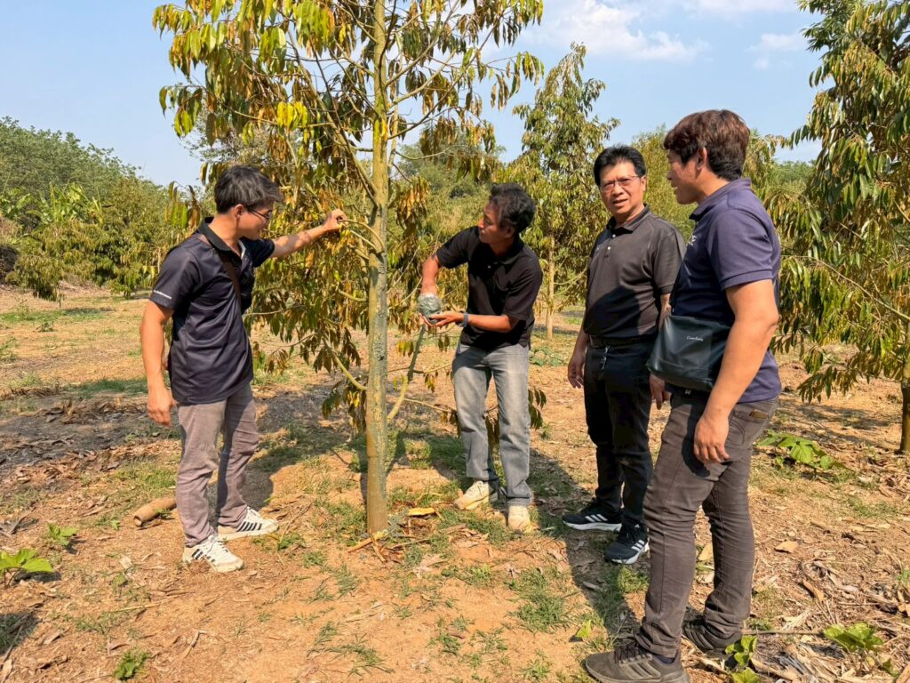 นางสาวนุชจารี วนาศิริ นักวิชาการส่งเสริมการเกษตรชำนาญการพิเศษ ปฏิบัติหน้าที่ผู้อำนวยการ ศทอ. เชียงใหม่ มอบหมายให้่นางสาววิยะดา แก้วเคียงคำ นวส.ชำนาญการ นางสาวกนกวรรณ สุดาแก้ว นวส.ชำนาญปฏิบัติการ และนายยุทธนา เดือนดาว นายช่างเครื่องกลชำนาญงาน ส่งมอบชีวภัณฑ์ภายใต้โครงการส่งเสริมสุขภาพพืชเพื่อเพิ่มประสิทธิภาพการผลิตสินค้าเกษตร แก่กลุ่มอารักขาพืชสำนักงานเกษตรจังหวัดลำปาง พร้อมทั้งติดตามผลการดำเนินงานโครงการสำรวจและประเมินสถานการณ์มอดเจาะผลกาแฟ (Coffee Berry Borer) ในพื้นที่ปลูกกาแฟภาคเหนือตอนบน การวางแผนการดำเนินงานของจังหวัด และแนวทางป้องกันกำจัดร่วมกันในอนาคตต่อไป จากนั้นเวลา 13.00 น. เดินทางลงพื้นที่แปลงเกษตรกร ต.บ้านกวาง อ.สูงเม่น จ.แพร่ ร่วมกับเจ้าหน้าที่กลุ่มอารักขาพืช กลุ่มส่งเสริมและพัฒนาการผลิต สำนักงานเกษตรจังหวัดแพร่ และเจ้าหน้าที่สำนักงานเกษตรอำเภอสูงเม่น เพื่อตรวจวินิจฉัยอาการผิดปกติของต้นไผ่เปาะ ซึ่งมีลักษณะอาการยอดแห้ง จากนั้นยืนต้นตาย หน่อไม้มีอาการยุบ ไม่สามารถขุดจำหน่ายได้ และเก็บตัวอย่างดินบริเวณโคนต้นและต้นที่แสดงอาการผิดปกติเพื่อนำกลับมาตรวจหาสาเหตุของอาการผิดปกติภายใต้ห้องปฏิบัติการต่อไป ทั้งนี้ได้แนะนำให้เกษตรกรหมั่นสำรวจและสังเกตอาการผิดปกติของไผ่และถ่ายทอดความรู้การวินิจฉัยลักษณะอาการของโรคพืชที่เกิดจากเชื้อราและเชื้อแบคทีเรียในเบื้องต้น พร้อมทั้งสนับสนุนเชื้อราไตรโคเดอร์มาเพื่อใช้ในการป้องกันกำจัดโรคพืชที่เกิดจากเชื้อรา และบำรุงรากพืชต่อไป จากนั้นเวลา 15.00 น. ลงพื้นที่หมู่ 9 ตำบลบ้านเหล่า อ.สูงเม่น เพื่อสำรวจและวินิจฉัยอาการผิดปกติของต้นทุเรียน เนื่องจากแสดงอาการใบเล็ก เหลืองและร่วงหล่น จากการวินิจฉัยเบื้องต้นพบว่าทุเรียนมีอาการรากเน่าโคนเน่า และพบเน่าบริเวณลำต้น ซึ่งเกิดจากเชื้อราไฟทอฟเธอรา จึงแนะนำให้เกษตรกรถากบริเวณเนื้อเยื่อบริเวณที่เกิดโรคออกไปเผาทำลาย และใช้เชื้อราไตรโคเดอร์มา 250 กรัม ผสมปูนแดง ½ กก. และน้ำ 1 ลิตร ทาบริเวณแผล พร้อมทั้งสนับสนุนเชื้อราไตรโคเดอร์มาแก่เกษตรกร เพื่อใช้ป้องกันกำจัดโรคพืชที่เกิดจากเชื้อราในพื้นที่ต่อไป (เมื่อวันที่ 24 มีนาคม 2569)