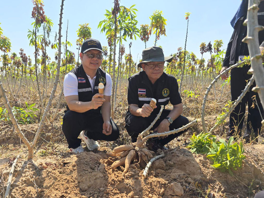 วันที่ 4 ธันวาคม 2568 นายประเสริฐ อินเกตุสมบูรณ์ ผู้อำนวยการศูนย์ส่งเสริมเทคโนโลยีการเกษตรด้านอารักขาพืช จังหวัดพิษณุโลก มอบหมายให้ นายอิทธิพล ยอดโค้น นักวิชาการส่งเสริมการเกษตรชำนาญการ ร่วมกับสำนักงานเกษตรจังหวัดกำแพงเพชร และสำนักงานเกษตรอำเภอขาณุวรลักษบุรี ลงพื้นที่ตรวจติดตามสถานการณ์ศัตรูพืชในแปลงมันสำปะหลัง หลังได้รับแจ้งว่าพบอาการผิดปกติคล้ายโรคพุ่มแจ้ ในหลายพื้นที่จากการสำรวจพบว่า แปลงมันสำปะหลังในพื้นที่ดังกล่าวมีลักษณะเป็นดินร่วนปนทราย และช่วงก่อนหน้านี้มี ฝนตกชุก มีสภาพอากาศชื้นสูง ซึ่งเอื้อต่อการเกิดโรคที่มีสาเหตุจากเชื้อรา รวมถึงการระบาดของแมลงศัตรูพืชบางชนิด ส่งผลให้พบอาการผิดปกติของมันสำปะหลังหลายรูปแบบ โดยเรียงลำดับความรุนแรงของปัญหาจากมากไปหาน้อยดังนี้ 1. โรคแอนแทรคโนส พบใบไหม้แห้งเป็นสีน้ำตาล เป็นหย่อม ๆ บริเวณขอบใบ และปลายยอดแห้งตาย สภาพฝนตกชุกและความชื้นสูงช่วยเร่งการพัฒนาโรค ทำให้เกิดความเสียหายได้รวดเร็ว 2.การเข้าทำลายของเพลี้ยแป้งและเพลี้ยหอยพบเพลี้ยแป้งและเพลี้ยหอยเกาะตามยอดอ่อน ใต้ใบ และลำต้น ทำให้ยอดชะงัก ใบเล็ก แคระแกร็น ใบแตกยอดใหม่เป็นกระจุก คล้ายอาการพุ่มแจ้ 3.อาการคล้ายโรคพุ่มแจ้บางแปลงพบยอดแคระแกร็น แตกยอดเป็นพุ่ม ใบมีขนาดเล็กผิดปกติ และพบเส้นดำตามลำต้น ซึ่งเป็นลักษณะที่ต้องเฝ้าระวังใกล้ชิด คำแนะนำเบื้องต้นแก่เกษตรกร ตัดแต่งส่วนที่เป็นโรคหรือถูกทำลายรุนแรงออกจากแปลง ตรวจแปลงสม่ำเสมอและกำจัดเพลี้ยแป้ง–เพลี้ยหอยด้วยชีวภัณฑ์หรือสารสกัดธรรมชาติ หลีกเลี่ยงการใช้ท่อนพันธุ์จากแปลงที่พบอาการผิดปกติ และหากพบอาการยอดแตกเป็นพุ่มหรือเส้นดำจำนวนมาก ให้แจ้งเจ้าหน้าที่เพื่อเก็บตัวอย่างตรวจวินิจฉัยการลงพื้นที่ครั้งนี้ เป็นความร่วมมือระหว่างหน่วยงานด้านการเกษตรในจังหวัดกำแพงเพชร เพื่อเฝ้าระวังโรคพุ่มแจ้และศัตรูพืชสำคัญของมันสำปะหลังไม่ให้ระบาดลุกลาม สร้างความเสียหายต่อผลผลิตของเกษตรกรในพื้นที่
