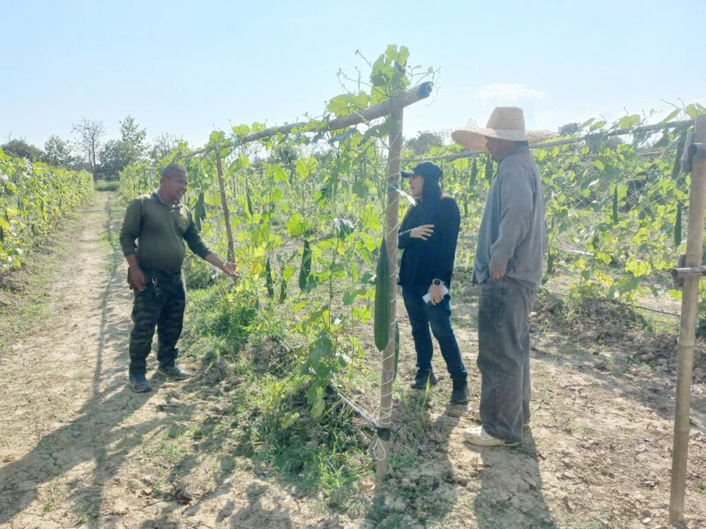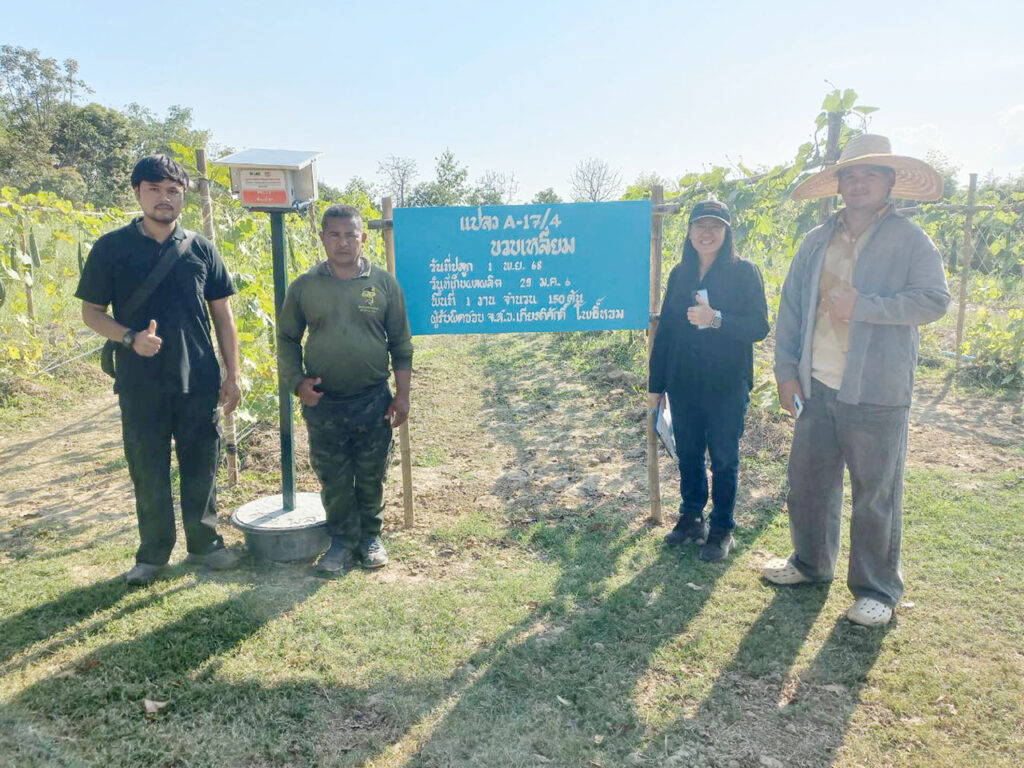 วันที่ 24 ธันวาคม 2568 นายประเสริฐ อินเกตุสมบูรณ์ ผู้อำนวยการศูนย์ส่งเสริมเทคโนโลยีการเกษตรด้านอารักขาพืช จังหวัดพิษณุโลก มอบหมายให้ นางเพื่อนแพง ขัติศรี นักวิชาการส่งเสริมการเกษตรชำนาญการ ติดตามโครงการส่งเสริมการจัดการสุขภาพพืชเพื่อเพิ่มประสิทธิภาพการผลิตสินค้าเกษตร ปีงบประมาณ พ.ศ.2569 กิจกรรม สำรวจศัตรูพืชและจัดเก็บข้อมูลสภาพแวดล้อมในแปลงเพื่อการพัฒนาแอปพลิเคชัน DOAE PEST FORECAST ณ ศูนย์ผลิตเมล็ดพันธุ์พืชพระราชทานกองพันซ่อมบำรุงที่ 23 ค่ายสมเด็จพระเอกาทศรถ ตำบลอรัญญิก อำเภอเมืองพิษณุโลก จังหวัดพิษณุโลก ดำเนินการจัดเก็บสภาพแวดล้อมในแปลงเพื่อการพัฒนาแอปพลิเคชัน DOAE PEST FORECAS และสำรวจศัตรูพืชแปลงบวบเหลี่ยม อยู่ในระยะให้ผลผลิต สภาพอากาศในปลงปลูก มีอุณหภูมิ 34 องศาเซลเซียส ความชื้นสัมพัทธ์ 46 % พบการทำลายของโรคราน้ำค้าง หนอนชอนใบและหนอนผีเสื้อฟัก ส่วนแมลงศัตรูธรรมชาติที่พบคือระยะตัวอ่อนของด้วงเต่า