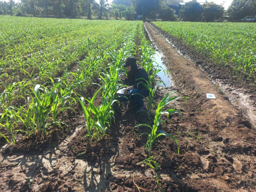 วันที่ 29 ธันวาคม 2568 นายประเสริฐ อินเกตุสมบูรณ์ ผู้อำนวยการศูนย์ส่งเสริมเทคโนโลยีการเกษตรด้านอารักขาพืช จังหวัดพิษณุโลก มอบหมายให้ นางเพื่อนแพง ขัติศรี นักวิชาการส่งเสริมการเกษตรชำนาญการติดตามโครงการส่งเสริมการจัดการสุขภาพพืชเพื่อเพิ่มประสิทธิภาพการผลิตสินค้าเกษตร ปีงบประมาณ พ.ศ.2569 กิจกรรมสำรวจแปลงต้นแบบการพยากรณ์และแจ้งเตือนการระบาดศัตรูพืช ณ หมู่ที่ 11 บ้านคลองห้วยชัน ตำบลศรีภิรมย์ อำเภอพรหมพิราม จังหวัดพิษณุโลก ในแปลงข้าวโพดเลี้ยงสัตว์ ที่ อายุ 33 วัน สภาพแสงส่วนใหญ่แดดออก อุณหภูมิ 26 องศาเซลเซียสความชื้นสัมพัทธ์ 64 เปอร์เซ็นต์ จากการสำรวจ พบระยะไข่ของหนอนกระทู้ข้าวโพด ร้อยละ 1 ของพื้นที่ (เฝ้าระวัง) ไม่ระบาด และโรคใบจุดร้อยละ 1 ของพื้นที่ (เฝ้าระวัง) ไม่ระบาด