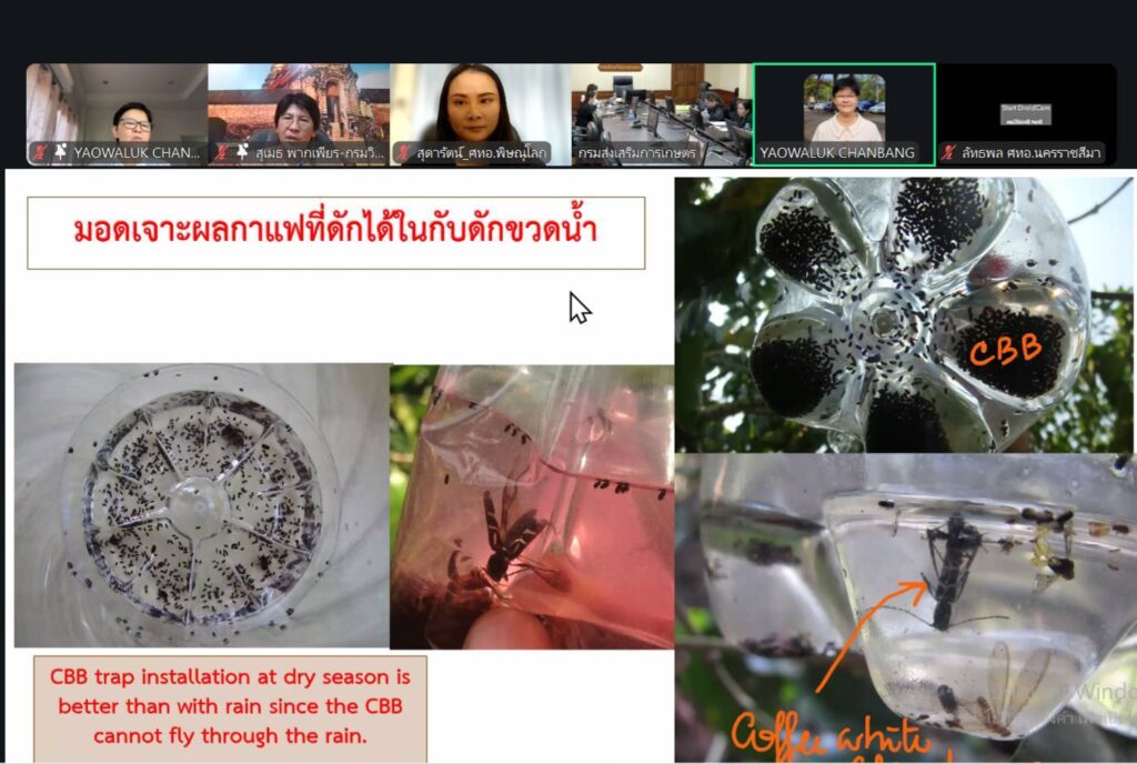 วันที่ 16 มกราคม 2569 นายประเสริฐ อินเกตุสมบูรณ์ ผู้อำนวยการศูนย์ส่งเสริมเทคโนโลยีการเกษตรด้านอารักขาพืช จังหวัดพิษณุโลก มอบหมายให้ นางสาวสุดารัตน์ แก้วน้ำอ่าง นักวิชาการส่งเสริมการเกษตรปฏิบัติการ ดำเนินการเข้าร่วมอบรมหลักสูตรการจำแนกมอดเจาะเมล็ดกาแฟ การสำรวจและประเมินสถานการณ์มอดเจาะเมล็ดกาแฟ (Coffee Berry Borer) ในพื้นที่ภาคเหนือตอนบน เพื่อเรียนรู้เกี่ยวกับลักษณะสัณฐานวิทยาการสำรวจ และแนวทางการจัดการมอดเจาะผลกาแฟอย่างยั่งยืน รวมถึงการจัดการมอดเจาะผลกาแฟด้วยแนวคิด IPM ผ่านระบบ Zoom meeting โดยมี นายวีรศักดิ์ บุญเชิญ รองอธิบดีกรมส่งเสริมการเกษตร เป็นประธาน ณ ศูนย์ส่งเสริมเทคโนโลยีการเกษตรด้านอารักขาพืช จังหวัดพิษณุโลก