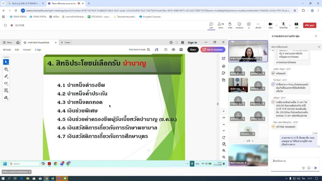 วันที่ 27 มกราคม 2569 นายประเสริฐ อินเกตุสมบูรณ์ ผู้อำนวยการศูนย์ส่งเสริมเทคโนโลยีการเกษตรด้านอารักขาพืช จังหวัดพิษณุโลก มอบหมายให้ นางพเยาว์ เรืองสุกใส เจ้าพนักงานธุรการชำนาญงาน ร่วมโครงการฝึกอบรมแนวทางการขอรับบำเหน็จบำนาญและสิทธิประโยชน์ของข้างราชการกรณีออกจากราชการของส่วนราชการในจังหวัดพิษณุโลก โปรแกรม Microsoft Team เพื่อให้มีความรู้ ความเข้าใจ สามารถนำความรู้เกี่ยวกับบำเหน็จบำนาญและสิทธิประโยชน์ของข้างราชการ กรณีออกจากราชการ ไปใช้ได้อย่างถูกต้องและมีประสิทธิภาพ กลุ่มเป้าหมาย ประกอบด้วย ข้าราชการและลูกจ้างประจำ ที่จะเกษียณอายุราชการหรือผู้ที่ประสงค์ลาออกจากราชการ รวมถึงบุคลากรของหน่วยงาน ที่สนใจ ณ ศูนย์ส่งเสริมเทคโนโลยีการเกษตรด้านอารักขาพืช ตำบลอรัญญิก อำเภอเมืองพิษณุโลก จังหวัดพิษณุโลก
