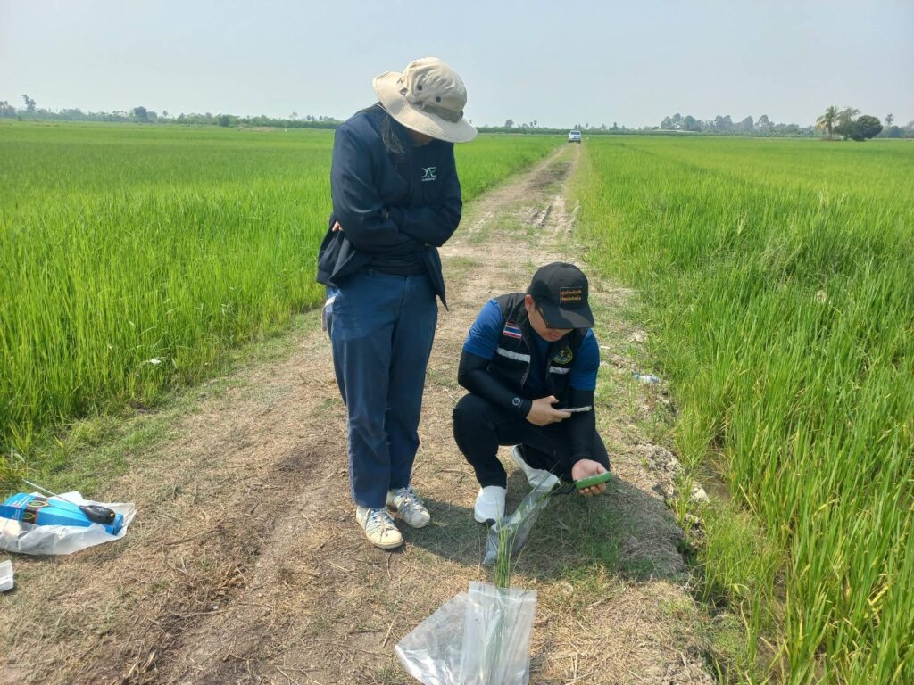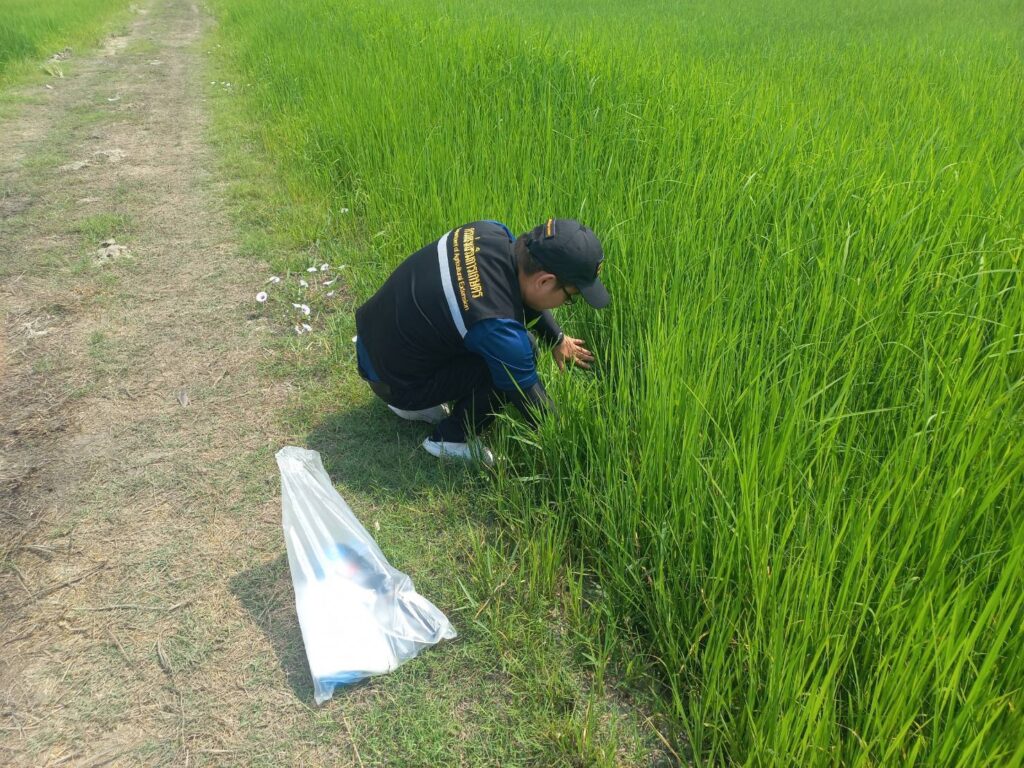 วันที่ 17 กุมภาพันธ์ 2569 นายประเสริฐ อินเกตุสมบูรณ์ ผู้อำนวยการศูนย์ส่งเสริมเทคโนโลยีการเกษตรด้านอารักขาพืช จังหวัดพิษณุโลก มอบหมายให้ นายอิทธิพล ยอดโค้น นักวิชาการส่งเสริมการเกษตรชำนาญการ ลงพื้นที่สำรวจสถานการณ์โรคและแมลงศัตรูข้าว ของ นางสาวศรินญา เรืองฟัก เกษตรกร หมู่ที่ 13 ตำบลวังแขม อำเภอคลองขลุง จังหวัดกำแพงเพชร ภายหลังได้รับแจ้งจากสำนักงานเกษตรอำเภอคลองขลุง ว่าพบอาการผิดปกติในนาข้าวของเกษตรกรในพื้นที่ เพื่อดำเนินการตรวจสอบ วินิจฉัยสาเหตุและให้คำแนะนำในการจัดการศัตรูพืชอย่างถูกต้องตามหลักวิชาการ จากการลงพื้นที่สำรวจ พบว่าข้าวพันธุ์ กข 107 อายุประมาณ 52 วัน อยู่ในระยะแตกกอมีลักษณะอาการแกร็น ใบมีขนาดเล็ก ระบบรากสั้นและมีสีคล้ำ บริเวณใบพบแผลจุดสีน้ำตาลกระจายทั่วแปลง อาการดังกล่าวเข้าข่ายลักษณะของโรคใบจุดที่เกิดจากเชื้อรา ซึ่งอาจส่งผลกระทบต่อการเจริญเติบโตและผลผลิตของข้าวได้ จากการสอบถามข้อมูลเพิ่มเติมพบว่า เกษตรกร มีการใส่ปุ๋ยเคมีสูตร 46-0-0 จำนวน 2 ครั้ง และยังไม่เคยมีการฉีดพ่นสารป้องกันกำจัดโรคและแมลงศัตรูพืชในแปลงดังกล่าว ในการนี้ เจ้าหน้าที่ได้ให้คำแนะนำแก่เกษตรกรในการจัดการปัญหาอย่างเหมาะสม ได้แก่ การเฝ้าระวังและติดตามอาการอย่างใกล้ชิด การปรับปรุงการจัดการธาตุอาหารพืชให้สมดุล หลีกเลี่ยงการใส่ปุ๋ยไนโตรเจนในอัตราสูงเกินความจำเป็น การจัดการแปลงให้มีการระบายน้ำที่เหมาะสมเพื่อลดความชื้นสะสมซึ่งเป็นปัจจัยส่งเสริมการเกิดโรค รวมทั้งแนะนำให้ใช้สารป้องกันกำจัดโรคพืชตามคำแนะนำของกรมส่งเสริมการเกษตร เมื่อพบการระบาดในระดับที่อาจก่อให้เกิดความเสียหายทางเศรษฐกิจ การดำเนินงานดังกล่าวมีวัตถุประสงค์เพื่อเฝ้าระวังและควบคุมการระบาดของโรคและแมลงศัตรูข้าวอย่างทันท่วงที ลดความเสี่ยงต่อความเสียหายของผลผลิต และเสริมสร้างความรู้ความเข้าใจแก่เกษตรกรในการจัดการศัตรูพืช อย่างถูกต้องตามหลักวิชาการ อันจะนำไปสู่การผลิตข้าวที่มีคุณภาพและยั่งยืนต่อไป