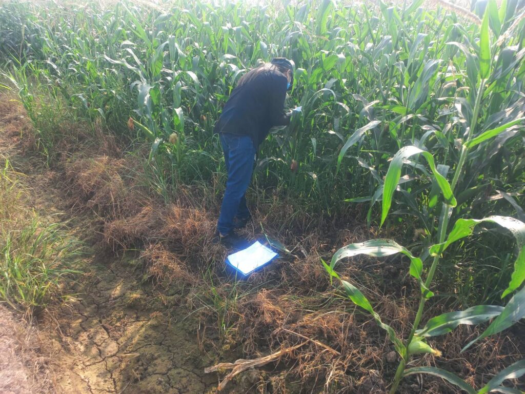 วันที่ 18 กุมภาพันธ์ 2569 นายประเสริฐ อินเกตุสมบูรณ์ ผู้อำนวยการศูนย์ส่งเสริมเทคโนโลยีการเกษตรด้านอารักขาพืช จังหวัดพิษณุโลก มอบหมายให้ นางเพื่อนแพง ขัติศรี นักวิชาการส่งเสริมการเกษตรชำนาญการ ติดตามโครงการส่งเสริมการจัดการสุขภาพพืชเพื่อเพิ่มประสิทธิภาพการผลิตสินค้าเกษตร ปีงบประมาณ พ.ศ.2569กิจกรรมสำรวจแปลงต้นแบบการพยากรณ์และแจ้งเตือนการระบาดศัตรูพืช ในแปลงข้าวโพดเลี้ยงสัตว์ ณ หมู่ที่ 11บ้านคลองห้วยชัน ตำบลศรีภิรมย์ อำเภอพรหมพิราม จังหวัดพิษณุโลก ที่ อายุ 84 วัน (ระยะติดฝัก) สภาพแสงส่วนใหญ่แดดออก อุณหภูมิ 29 องศาเซลเซียส ความชื้นสัมพัทธ์ 59 เปอร์เซ็นต์ จากการสำรวจ พบการระบาด ของโรคกาบใบเน่า ร้อยละ 11 (ระบาดน้อย) และหนอนกระทู้ข้าวโพดลายจุด ร้อยละ 2 (เฝ้าระวัง)