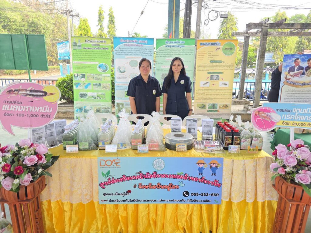 วันที่ 24 กุมภาพันธ์ 2569 นายประเสริฐ อินเกตุสมบูรณ์ ผู้อำนวยการศูนย์ส่งเสริมเทคโนโลยีการเกษตรด้านอารักขาพืช จังหวัดพิษณุโลก มอบหมายให้ นางสาวประภาทิพย์ พันธชาติ นักวิชาการส่งเสริมการเกษตรชำนาญการและ นางสาวสุดารัตน์ แก้วน้ำอ่าง นักวิชาการส่งเสริมการเกษตรปฏิบัติการ ร่วมงานโครงการคลินิกเกษตรเคลื่อนที่ในพระราชนุเคราะห์ สมเด็จพระบรมโอรสาธิราชฯ สยามมกุฎราชกุมาร ครั้งที่ 2 ประจำปีงบประมาณ พ.ศ.2569 เพื่อให้เกษตรกรที่มีปัญหาด้านการเกษตรในพื้นที่ห่างไกล สามารถเข้าถึงการบริการทางวิชาการและได้รับการแก้ไขปัญหาด้านการเกษตรอย่างครบวงจร บูรณาการความร่วมมือระหว่างหน่วยงานวิชาการ หน่วยงานส่งเสริมและศูนย์เรียนรู้การเพิ่มประสิทธิภาพการผลิตสินค้าเกษตร (ศพก.) ในการให้บริการแก้ไขปัญหาทางการเกษตรร่วมกันมีผู้เข้าร่วม จำนวน 125 ราย โดยมี นายอาทร พิมชะนก รองผู้ว่าราชการจังหวัดตาก ให้เกียรติเป็นประธานในพิธีณ โดมสวนสุขภาพเทศบาลตำบลแม่ต้าน หน้าที่ว่าการอำเภอท่าสองยาง จังหวัดตาก