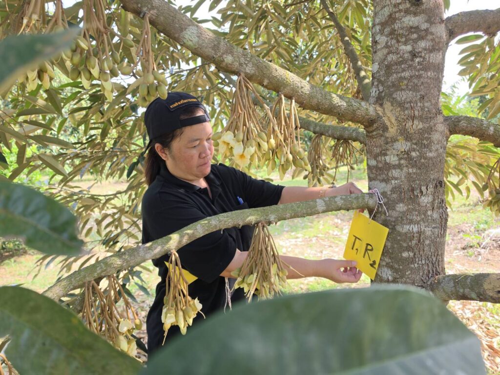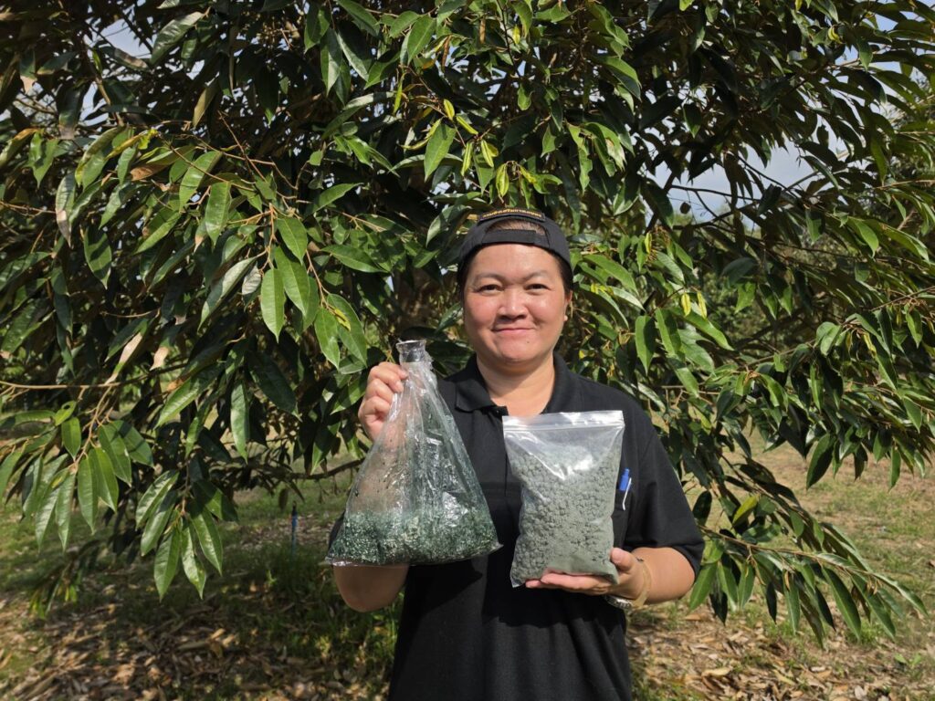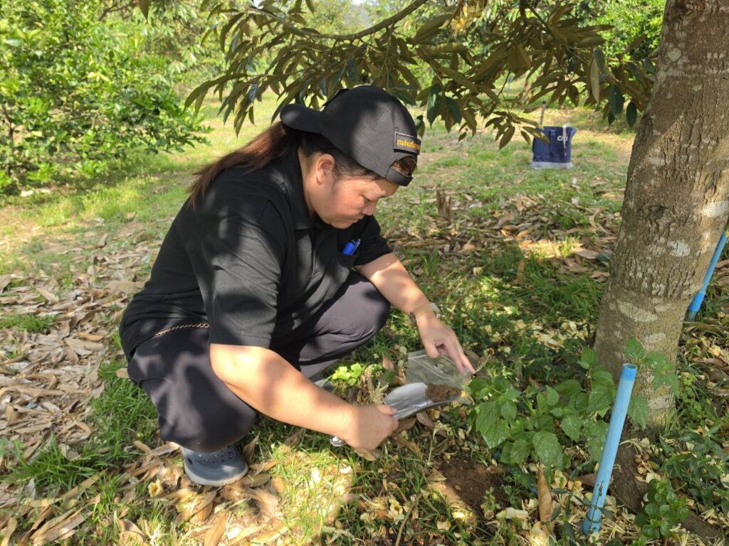 วันที่ 10 มีนาคม 2569 นายประเสริฐ อินเกตุสมบูรณ์ ผู้อำนวยการศูนย์ส่งเสริมเทคโนโลยีการเกษตรด้านอารักขาพืชจังหวัดพิษณุโลก มอบหมายให้ นางสาวประภาทิพย์ พันธชาติ นักวิชาการส่งเสริมการเกษตรชำนาญการ ศึกษาวิจัย เรื่อง การทดสอบประสิทธิภาพของเชื้อราไตรโคเดอร์มาอัดเม็ด ในการป้องกันโรครากเน่าโคนเน่าทุเรียน โดยทำการใส่เชื้อราไตรโคเดอร์มา ชนิดสดและเชื้อราไตรโคเดอร์มา อัดเม็ดลงดินรอบต้นทุเรียน และเก็บตัวอย่างดินเพื่อทำการตรวจสอบความมีชีวิตของเชื้อราไตรโคเดอร์มาในสภาพพื้นที่ ณ สวนทุเรียน ตำบลบ้านตึก อำเภอศรีสัชนาลัย จังหวัดสุโขทัย
