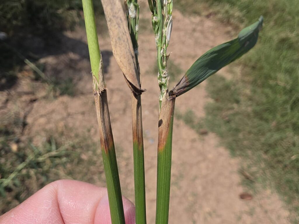 วันที่ 10 มีนาคม 2569 นายประเสริฐ อินเกตุสมบูรณ์ ผู้อำนวยการศูนย์ส่งเสริมเทคโนโลยีการเกษตรด้านอารักขาพืชจังหวัดพิษณุโลก มอบหมายให้ นางสาวประภาทิพย์ พันธชาติ นักวิชาการส่งเสริมการเกษตรชำนาญการ สำรวจและติดตามสถานการณ์การระบาดของโรคกาบใบเน่าในนาข้าวพื้นที่ 9 ไร่ บ้านใหม่บางหว่าน หมู่ 8 ตำบลยางซ้าย อำเภอเมือง จังหวัดสุโขทัย เบื้องต้นพบการระบาด 30 เปอร์เซ็นต์ของพื้นที่ และเนื่องจากเลยวันเก็บเกี่ยวมา 5 วัน จึงไม่แนะนำให้ฉีดพ่นสารเคมี เนื่องจากไม่คุ้มค่าทางเศรษฐกิจ ซึ่งปัญหาที่พบในพื้นที่ได้แก่ ร้านสารเคมีแนะนำสารเคมีที่ไม่จำเป็นให้แก่เกษตรกร เป็นการเพิ่มต้นทุน ในการผลิต และแนะนำสารเคมีที่ไม่ตรงตามชนิดของศัตรูพืช จึงได้ให้คำแนะนำในการซื้อสารเคมีที่ถูกต้องและเหมาะสมกับชนิดของศัตรูพืช โดยสารเคมที่แนะนำ ได้แก่ โพรพิโคนาโซล ไดฟีโนโคนาโซล และ อะซอกซีสโตรบิน เป็นต้น เพื่อให้ควบคุมโรคและแมลงศัตรูพืช ได้อย่างมีประสิทธิภาพ ต่อไป