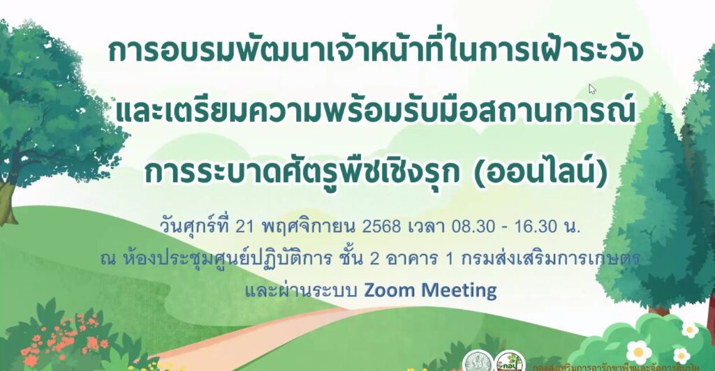 ข่าวประชาสัมพันธ์ศทอ.พิษณุโลก อบรมเจ้าหน้าที่ ในการเฝ้าระวังและเตรียมความพร้อมรับมือสถานการณ์การระบาดศัตรูพืชเชิงรุก (ออนไลน์) pmc09 / 21 พฤศจิกายน 2025 วันที่ 21 พฤศจิกายน